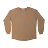 חולצת T ארוכה עם שרוול אמריקאי במידות אוברסייז בצבע חום אדמה בהיר עם רקמה מורכבת של שמש, ירח וכוכב. בד החולצה הוא רך, דקיק ונעים ומתאים לאפשרויות סטיילינג מגוונות: מראה אוברסייז או בתוך המכנסיים.